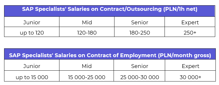 According to the report ‘The SAP Specialist Market in Poland 2025–2027’, FI/CO consultants most often earn PLN 180–250 net per contract and approximately PLN 18,000–25,000 gross per employment contract. 52% of respondents are satisfied with their remuneration.